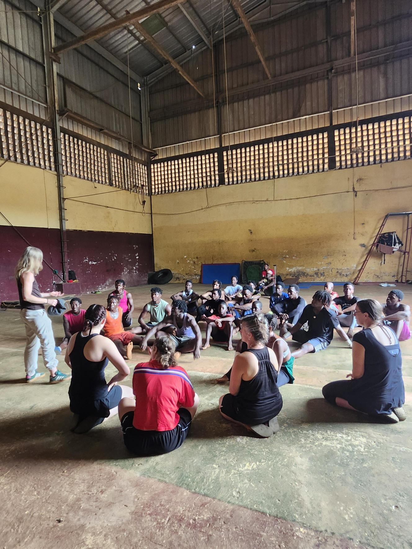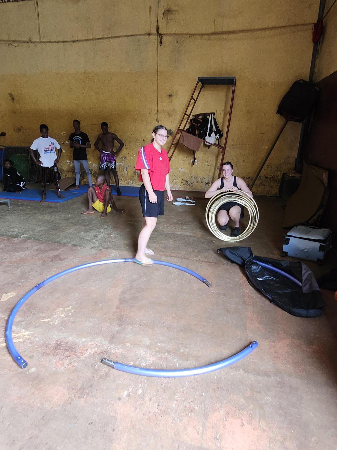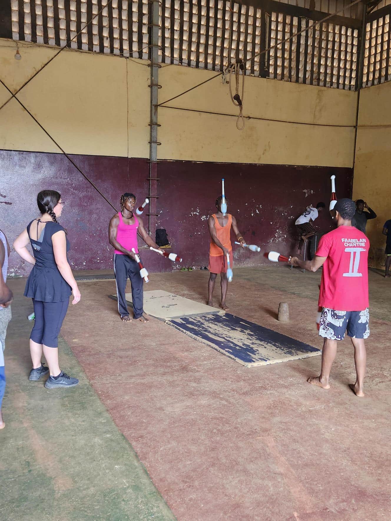 C’est dans le cadre de la deuxième édition de La nuit du cirque, hébergée par le centre Franco-Guinéen, que nos étudiantes Zoé et Frédérique et nos professeures Véronique et Céline, accompagnées par notre Directeur Tim Roberts, ont posé leurs valises pour près de trois semaines en Guinée. Au programme, rencontre avec les artistes locaux, entrainements collectifs, apprentissages et découverte des savoirs locaux dans différentes disciplines et séances de partages riches et multiples.